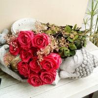 Magnifique bouquet de 9 roses stabilisées avec gypsophile stabilisé