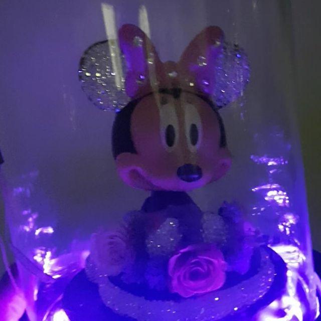 CLOCHE verre 26cm ROSE éternelle LED Minnie Strass